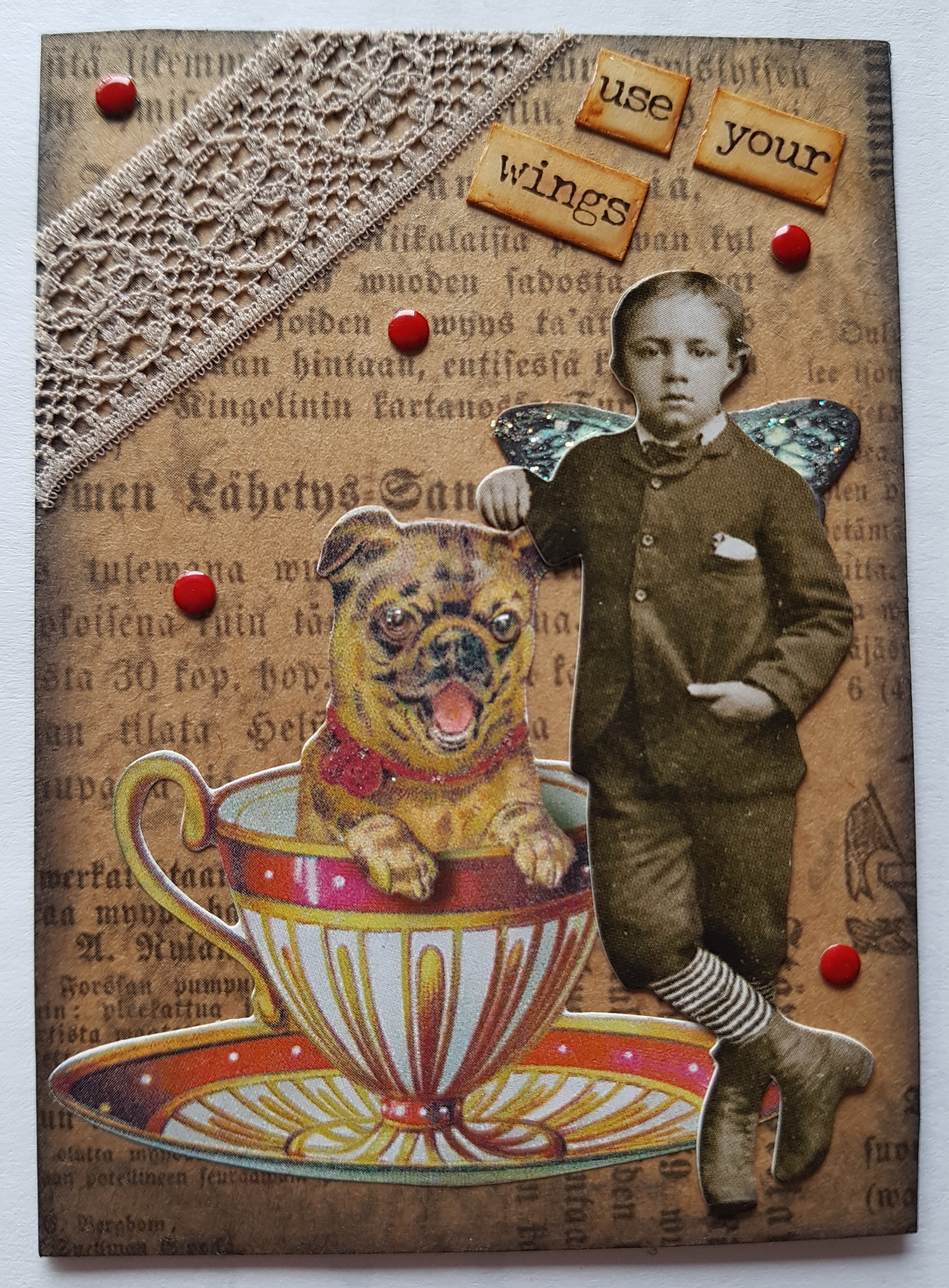 Koukussa Kortteihin Vintage-haasteessa kysytään "Saisiko olla kuppi kahvia tai teetä?". Tein haasteeseen toisenkin atcn: